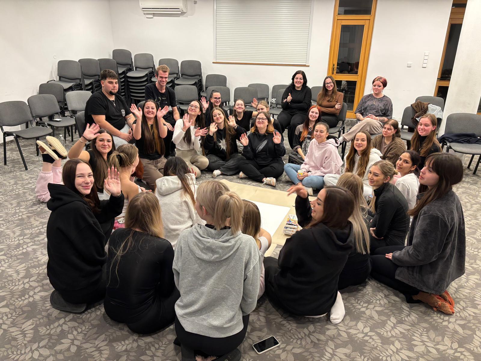 Druhý den jsme začali ranní jógou, které se zúčastnili překvapivě i ti, kdo původně neplánovali vstávat tak brzy! Po snídani jsme si zabalili věci a čekal nás ještě poslední týmový úkol – přelézačka, při které jsme museli spolupracovat a pomáhat si navzájem, abychom všichni společně překonali překážku. Nakonec došlo ke korunovaci nás všech a oficiální pasování na studenta VOŠky.