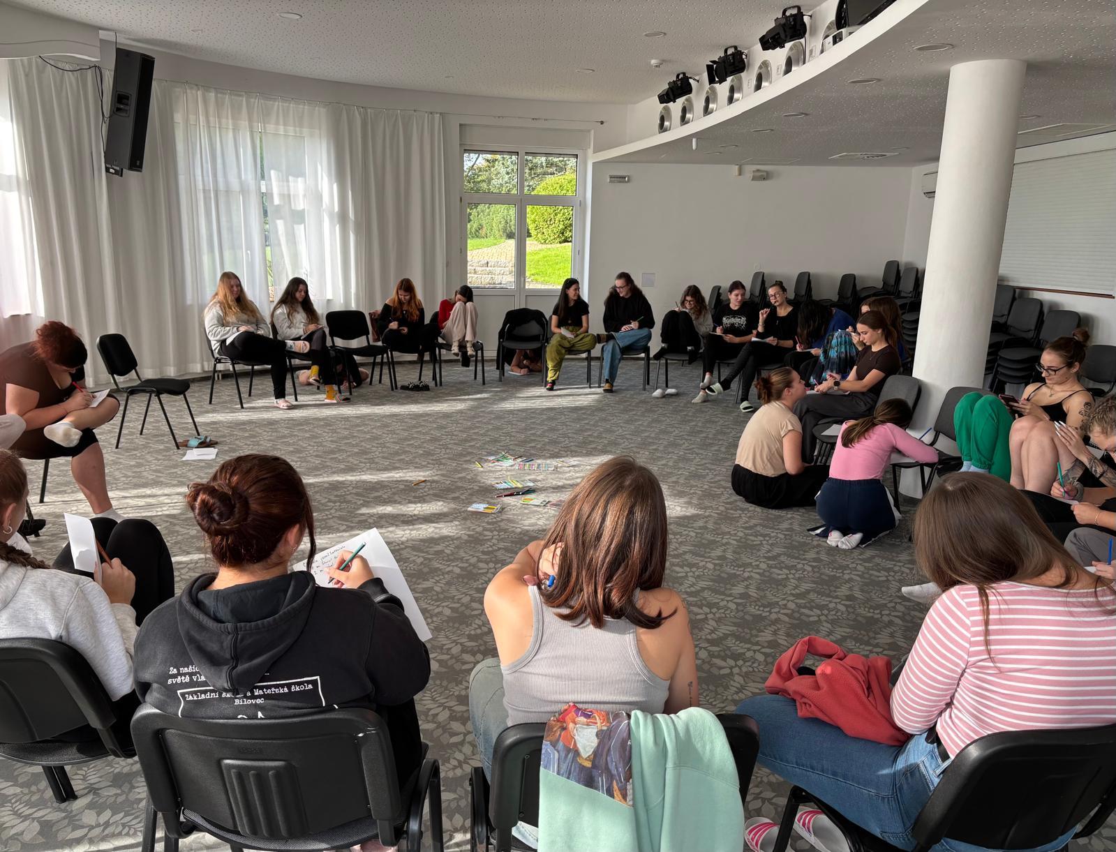 Večer nás čekala kreativní aktivita – malování temperami na téma „Kde jsme teď a kde budeme za tři roky.“
