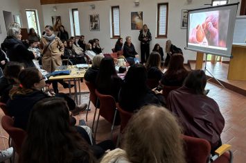Třída 1.C vytvořila obraz květiny, kolem které poletovali motýlci, symbolizující jednotlivé studenty.