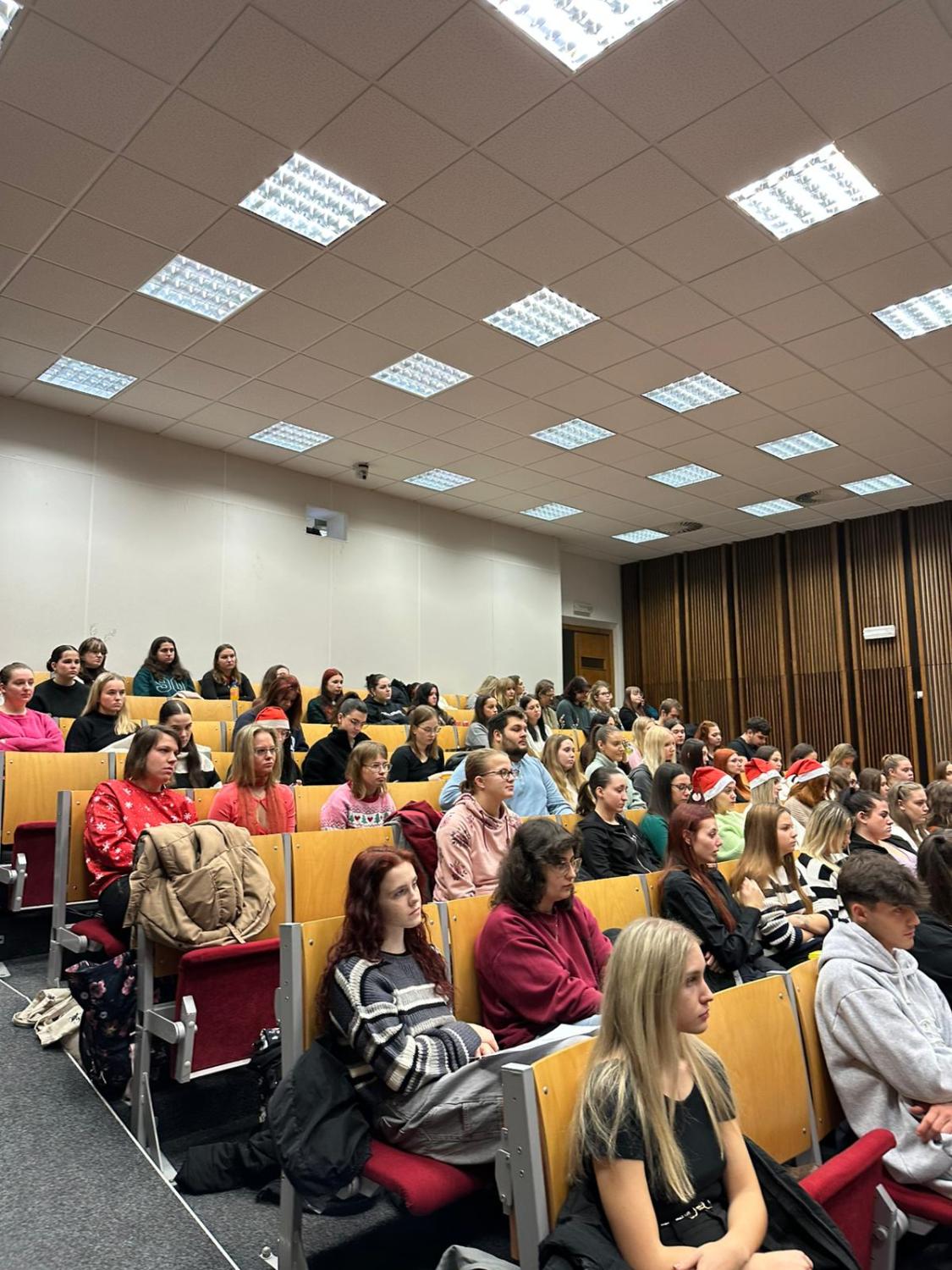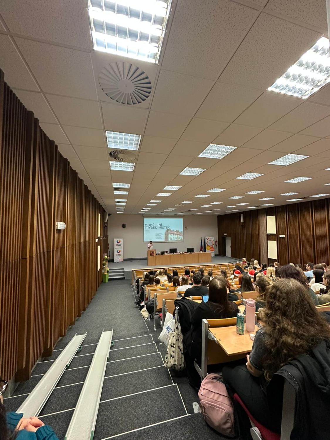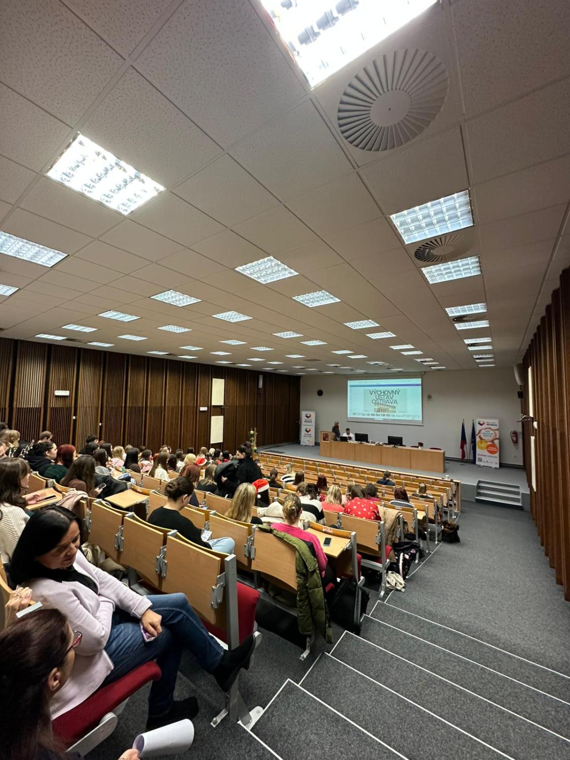 V úterý 2. prosince 2025 jsme se na VOŠce společně naladili na předvánoční atmosféru během našeho tradičního Vánočního jarmarku. Program jsme zahájili pracovně – odbornou přednáškou o práci vychovatele ve Výchovném ústavu Ostrava-Hrabůvka, pracoviště Polanka nad Odrou, na Oddělení pro chlapce vyžadující soustavnou intenzivní individuální péči. Poté jednotlivé třídy denního studia představily svou adoptovanou organizaci a aktivitu, kterou v rámci spolupráce naplánovaly či zrealizovaly. Vyhlásili jsme také výsledky sbírky Bílá pastelka a ocenili ty nejúspěšnější. K atmosféře jarmarku přispěl prodej tematicky laděných rukodělných výrobků klientů sociálních služeb Charity sv. Alexandra, Mens Sana, z.ú. a Prapos, z.s. Adventní chvíle nám zpříjemnil výborný vánoční punč, cukroví a koledy, které zněly celou školou.