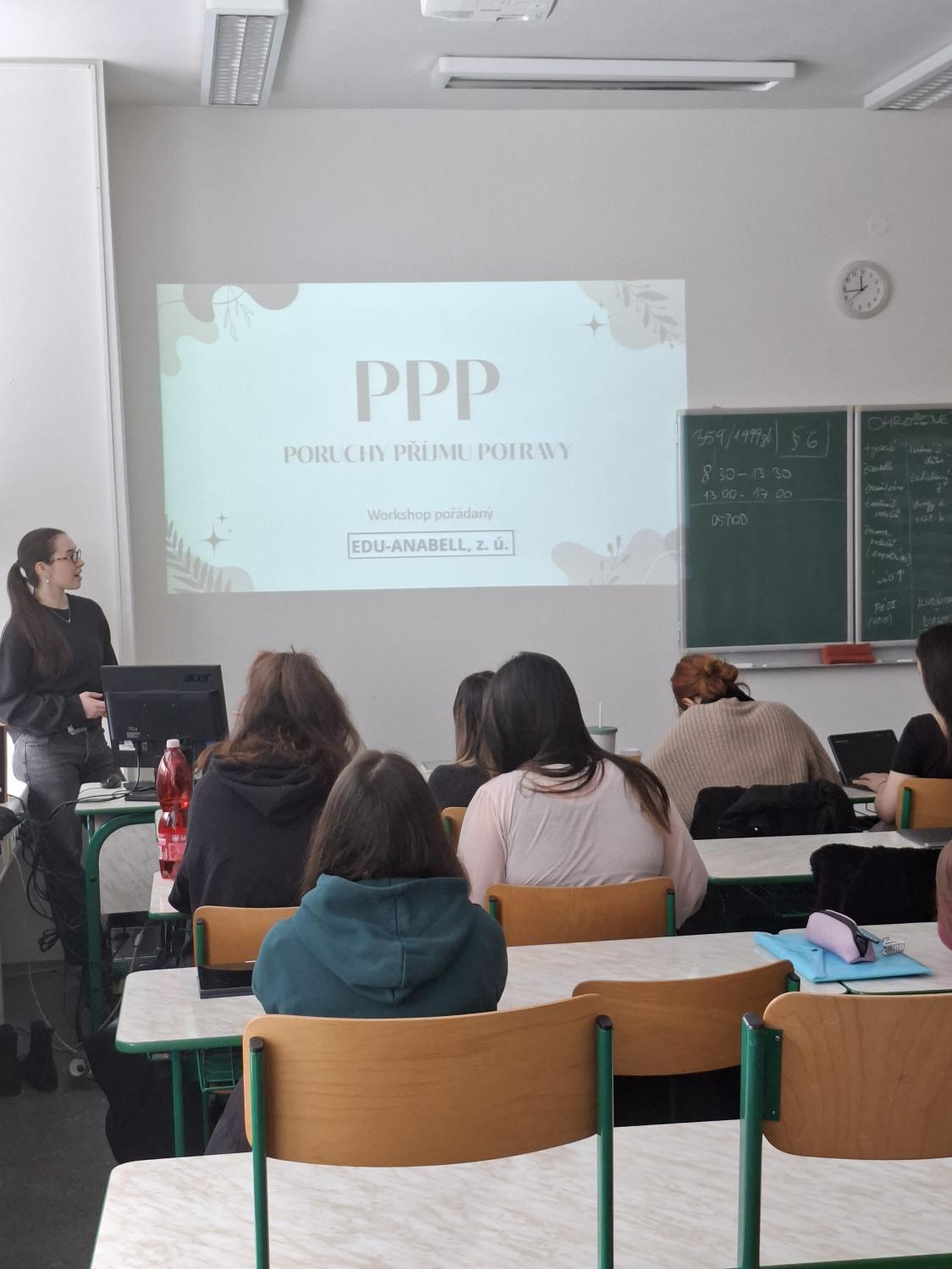 První ročníky se zúčastnily workshopu na stále aktuální téma Poruchy příjmu potravy, které nám představila organizace Anabell. Workshop o poruchách příjmu potravy byl zaměřen na zvýšení povědomí o tomto závažném psychickém onemocnění, které postihuje děti, dospívající i dospělé. Cílem setkání bylo přiblížit studentům příčiny vzniku poruch příjmu potravy, jejich projevy, možnosti léčby i prevenci.