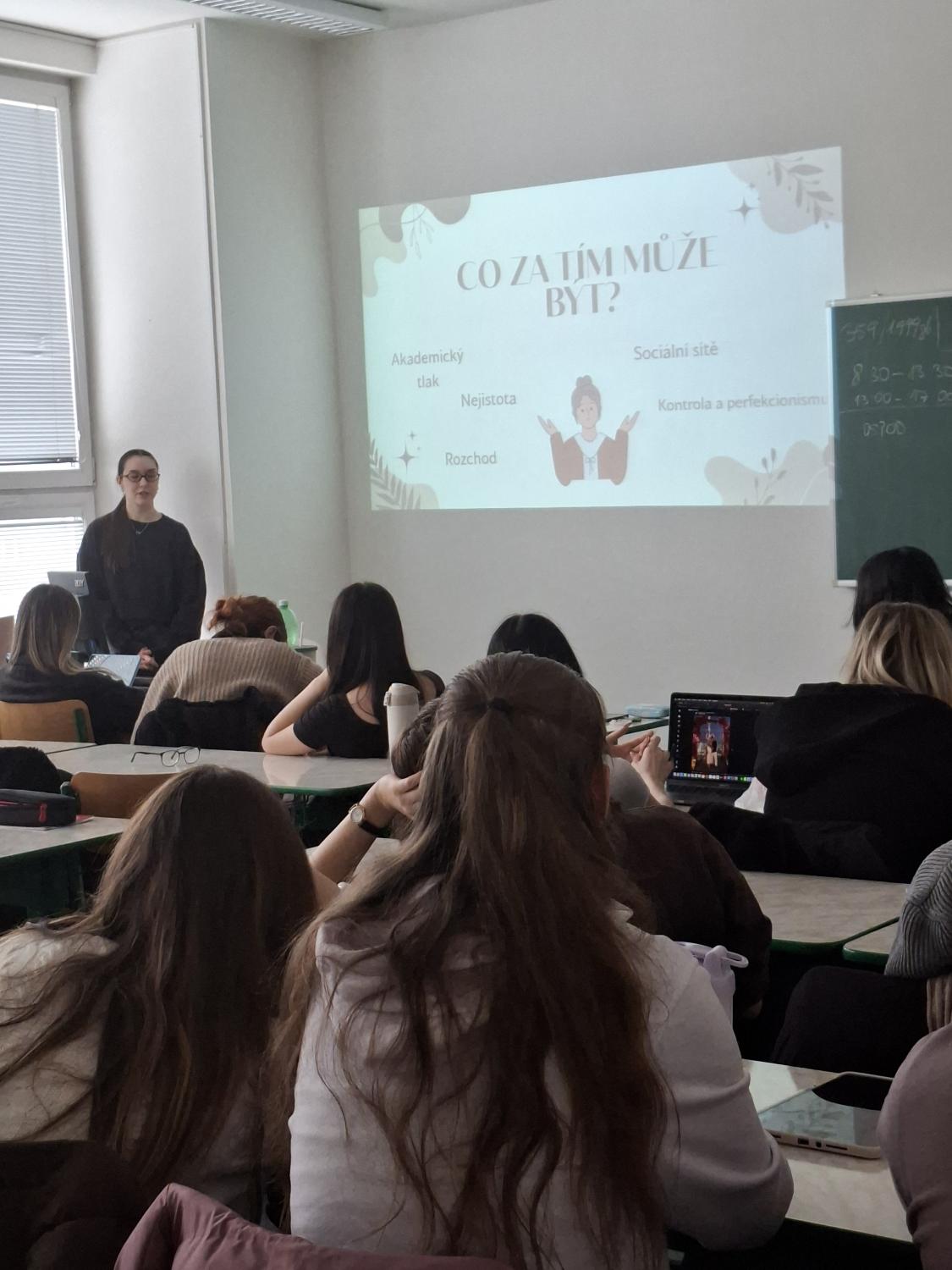 Součástí workshopu byla otevřená diskuse, kde studenti mohli sdílet své zkušenosti a pokládat otázky přednášející. Velký důraz byl kladen na prevenci – budování zdravého vztahu k jídlu, podpora pozitivního vnímání vlastního těla a otevřená komunikace v rodině i ve škole.