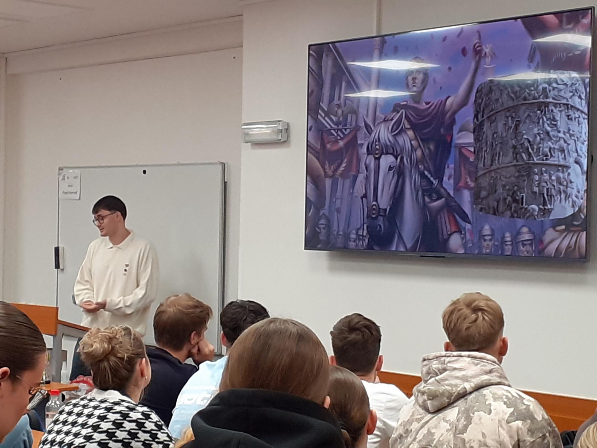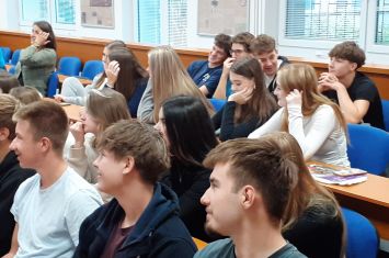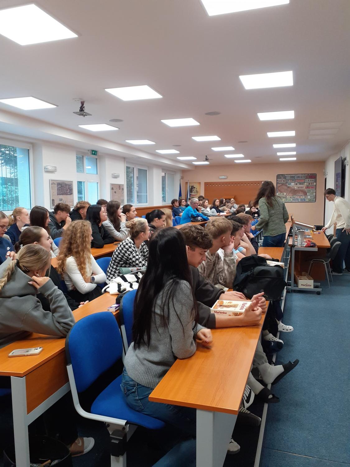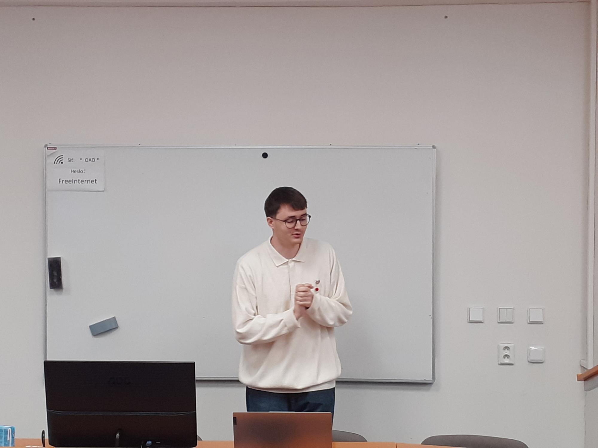 Druhá část programu patřila studentovi Ostravské univerzity z Moldavska, Andreji Serepitcovi. Připravil si vtipnou a poutavou prezentaci o své rodné zemi – představil nám její tradice, kuchyni, jazyk i zajímavosti. Dokonce jsme si vyzkoušeli čtení v moldavštině, což rozhodně nebylo jednoduché! Andrejovo vyprávění bylo tak inspirativní, že mnozí z nás začali uvažovat o návštěvě této často opomíjené země.
