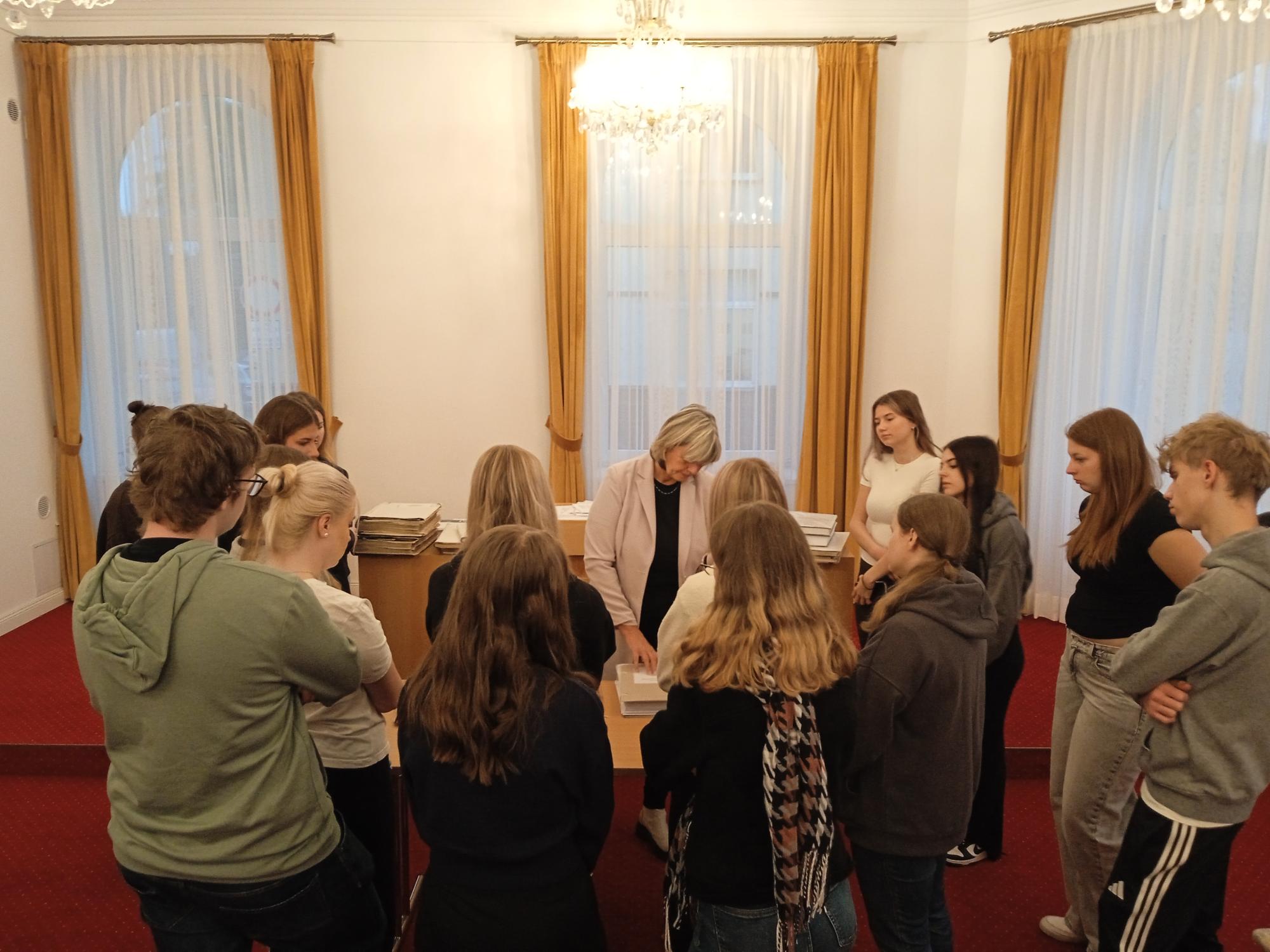 Dne 9. října 2025 žáci 2. ročníku oboru Veřejnosprávní činnost navštívili Obecní úřad v Mariánských Horách, konkrétně odbor matriky. Zde jim zaměstnankyně úseku matriky ukázala matriční knihy a doklady, umožnila nahlédnout do matričních knih nebo zprostředkovala zajímavosti a potřebné základní znalosti v této oblasti.