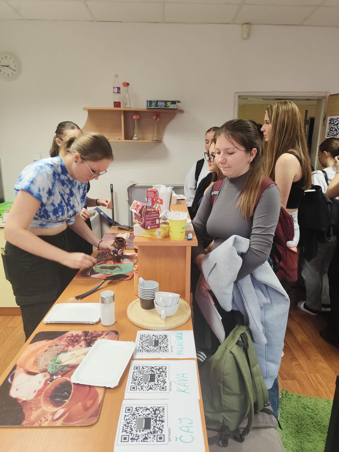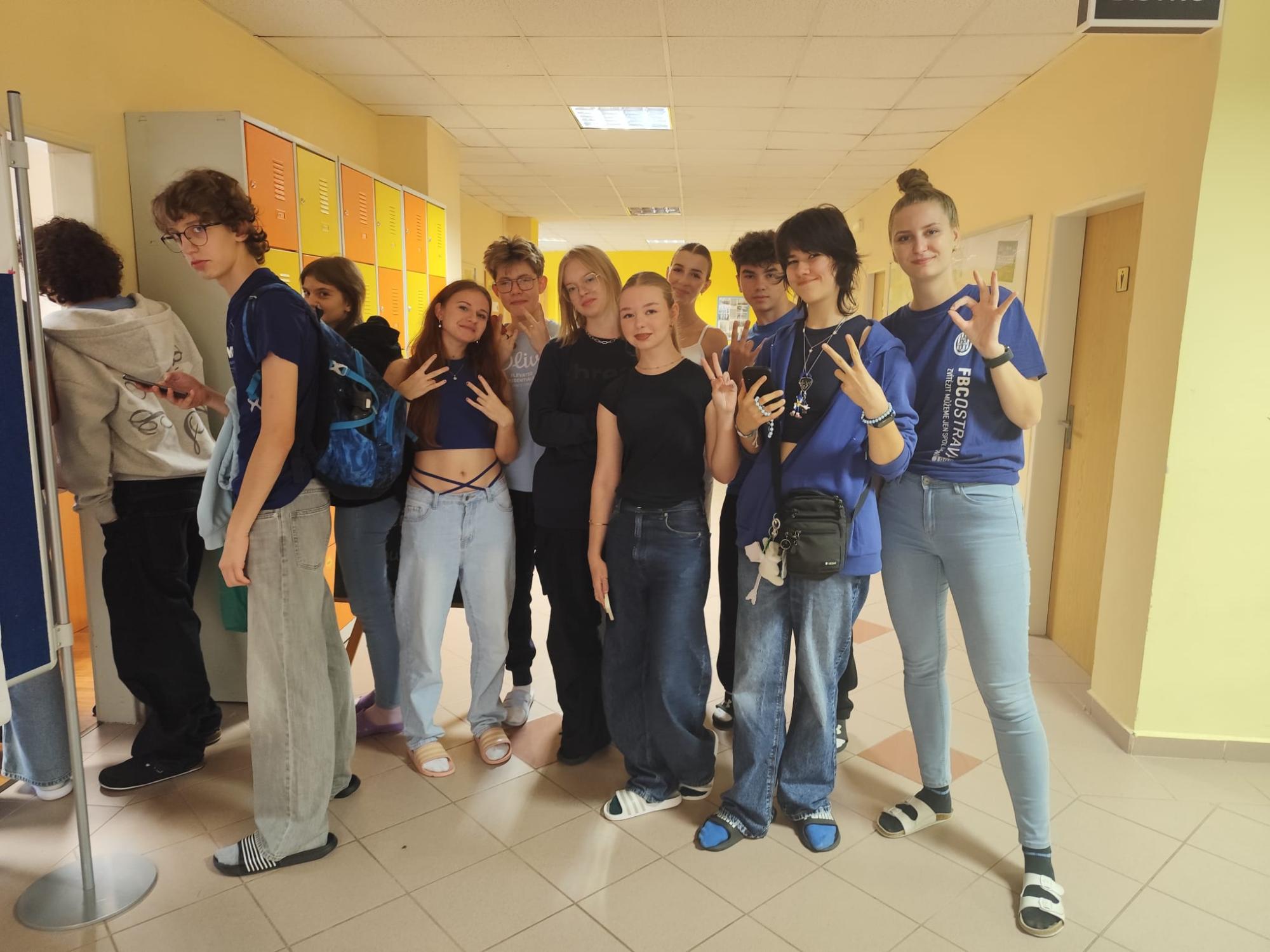 Ve středu 8. října jsme na naší škole v rámci SR uspořádali akci Den modrých triček, která byla zaměřena na boj proti šikaně. Během dopoledne jsme ve "studentské místnosti" prodávali palačinky. Studenti, kteří měli modré tričko, měli palačinku zdarma, ostatní si mohli palačinku zakoupit za 15 Kč/kus. Celkově jsme vydělali Kč 1276. Všechny vybrané peníze jsme věnovali na podporu Linky bezpečí, která pomáhá dětem a mladým lidem v těžkých životních situacích. Akce měla velký úspěch a ukázala, jak důležitá je vzájemná podpora a společný boj proti bezpráví. Všichni za jednoho, jeden za všechny. Děkujeme všem, kdo se zapojil a podpořil tuto dobrou věc!