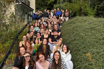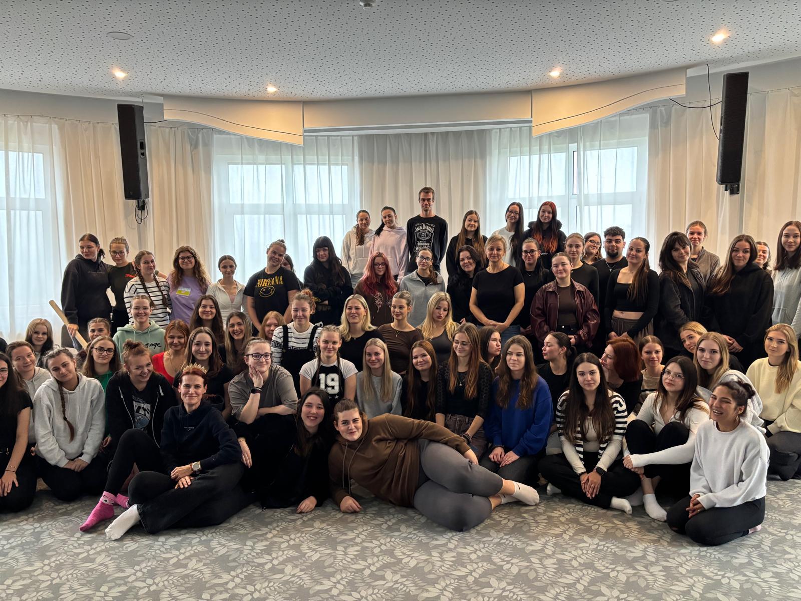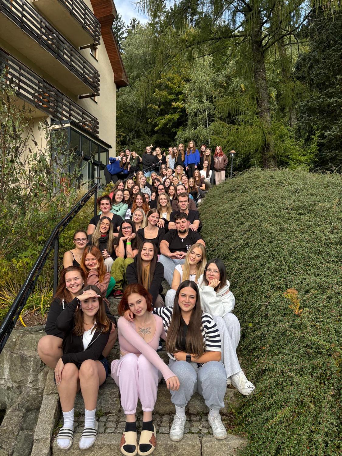 Druhý den jsme začali ranní jógou, které se zúčastnili překvapivě i ti, kdo původně neplánovali vstávat tak brzy! Po snídani jsme si zabalili věci a čekal nás ještě poslední týmový úkol – přelézačka, při které jsme museli spolupracovat a pomáhat si navzájem, abychom všichni společně překonali překážku. Nakonec došlo ke korunovaci nás všech a oficiální pasování na studenta VOŠky.