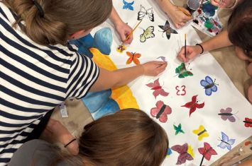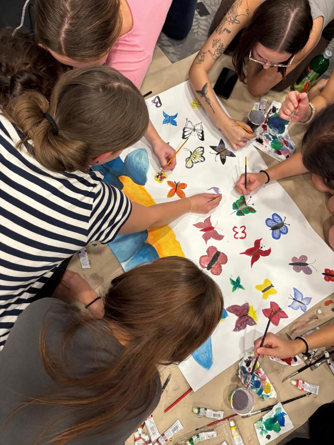 Třída 1.C vytvořila obraz květiny, kolem které poletovali motýlci, symbolizující jednotlivé studenty.