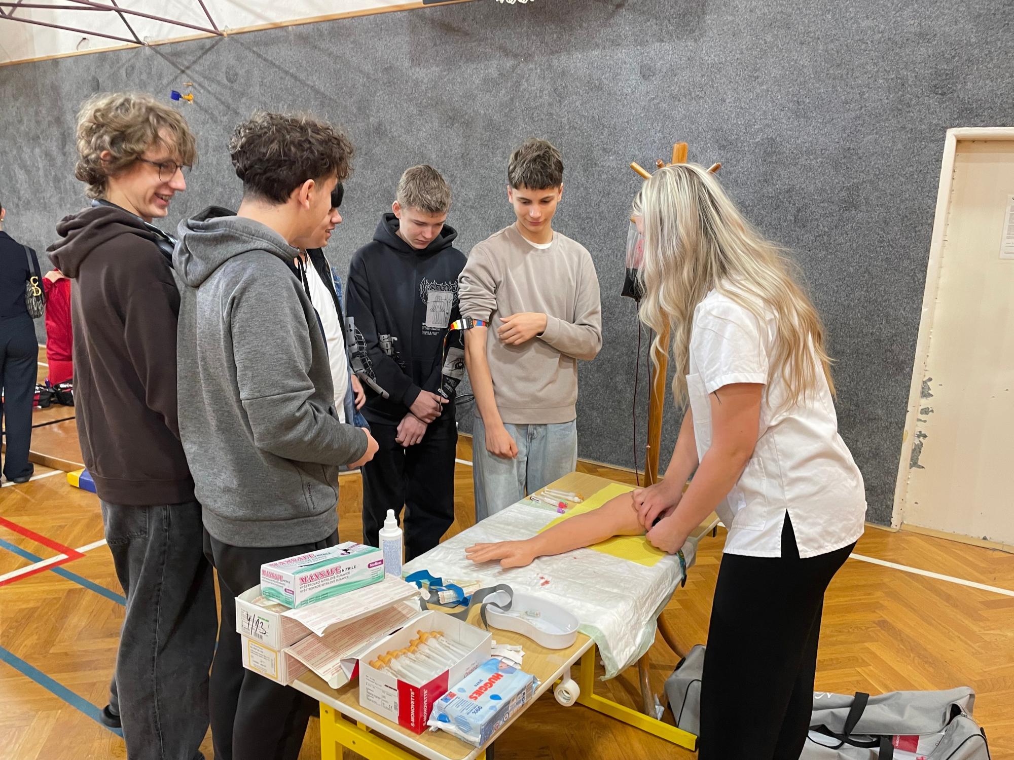 Dne 24.10. 2025 u nás proběhla již tradiční akce Den zdraví, která je určena pro žáky prvních ročníků. Ve spolupráci se Střední zdravotnickou školou jsme pro naše studenty v tělocvičně připravili různá interaktivní stanoviště a také přednášky věnované zdravému stravování, složení potravin a aktuálním hrozbám ve výživě.