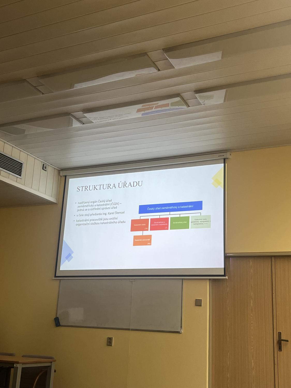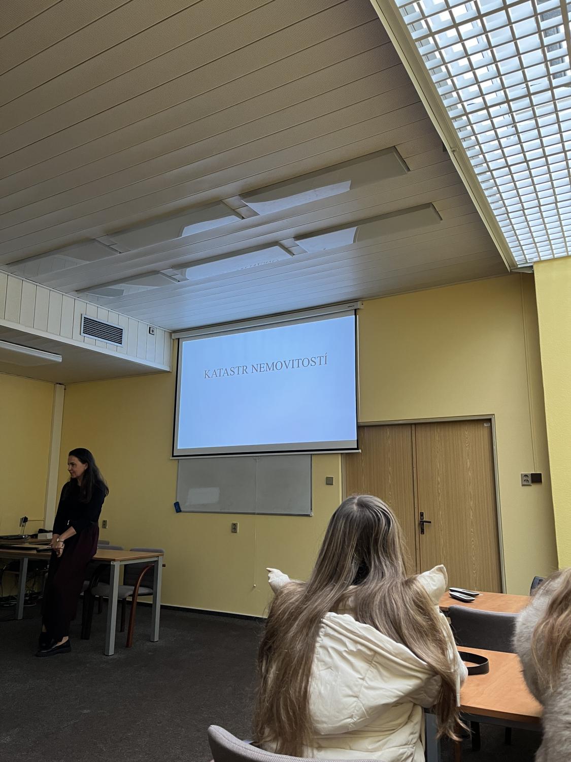 Jak funguje katastr nemovitostí? Jaké druhy zápisů je možné do něj dělat? Co vše se tam zapisuje? Na tyto otázky hledali odpověď studenti 3. ročníku oboru Veřejnosprávní činnost na exkurzi, která proběhla 11. 11. 2025 na Katastrálním úřadu pro Moravskoslezský kraj, Katastrálním pracovišti Ostrava. Průvodkyní jim k tomu byla paní ředitelka Ing. Hana Pijáková. Studenti měli v praxi možnost vidět např. realizaci návrhu na vklad či katastrální mapy z různých období historie českých katastrů.