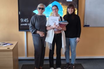 Vyhlášení a předání cen proběhlo v aule v pondělí 12.1.2026 o velké přestávce.  Dr, Lg